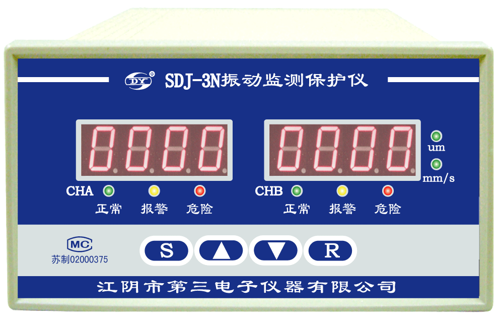 SDJ-3N型振動監測保護儀(多功能)來自獨立的SG-2型速度傳感信號,在LED數字顯示器上,保留小數點讀數,連續地顯示4位讀數的振幅值或振速值,做到一表多用,該保護儀增加了高低通濾波器和隔離柵,大大提高了抗干擾能力,具備精度高,穩定性好的特點。監測保護儀有盤裝式和掛壁式二種供用戶選擇。主要適用于電力、鋼鐵、建材、化工等領域。